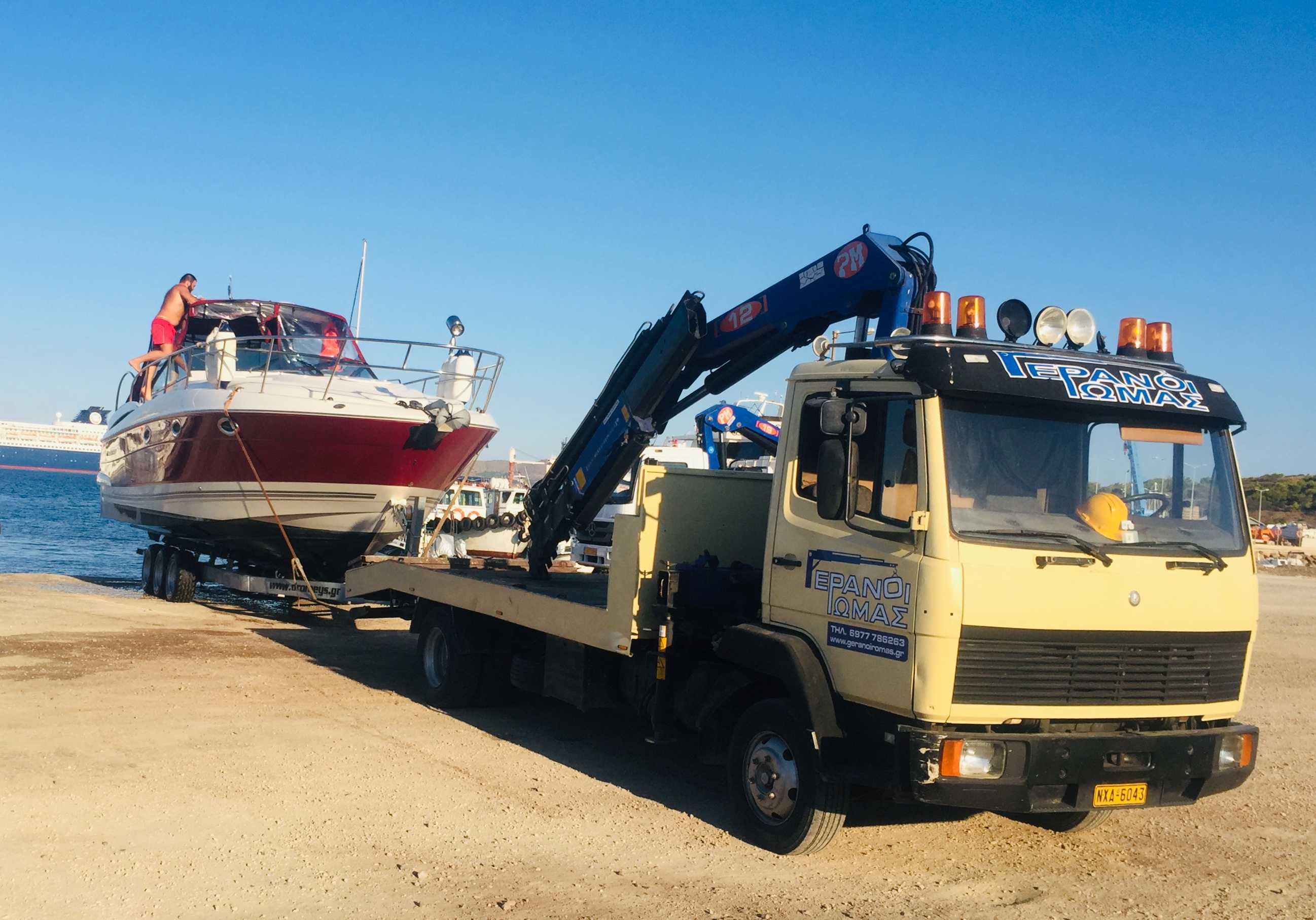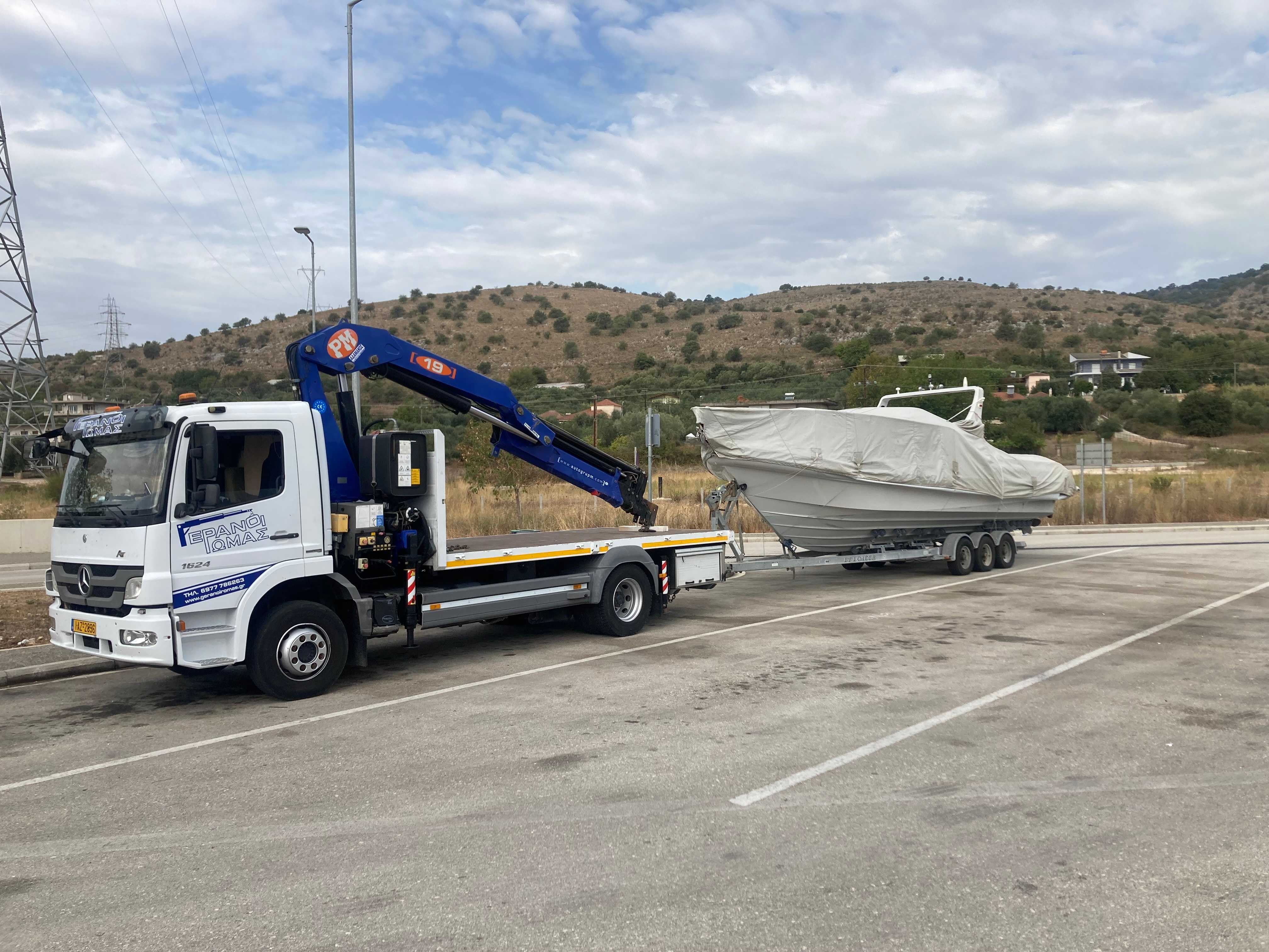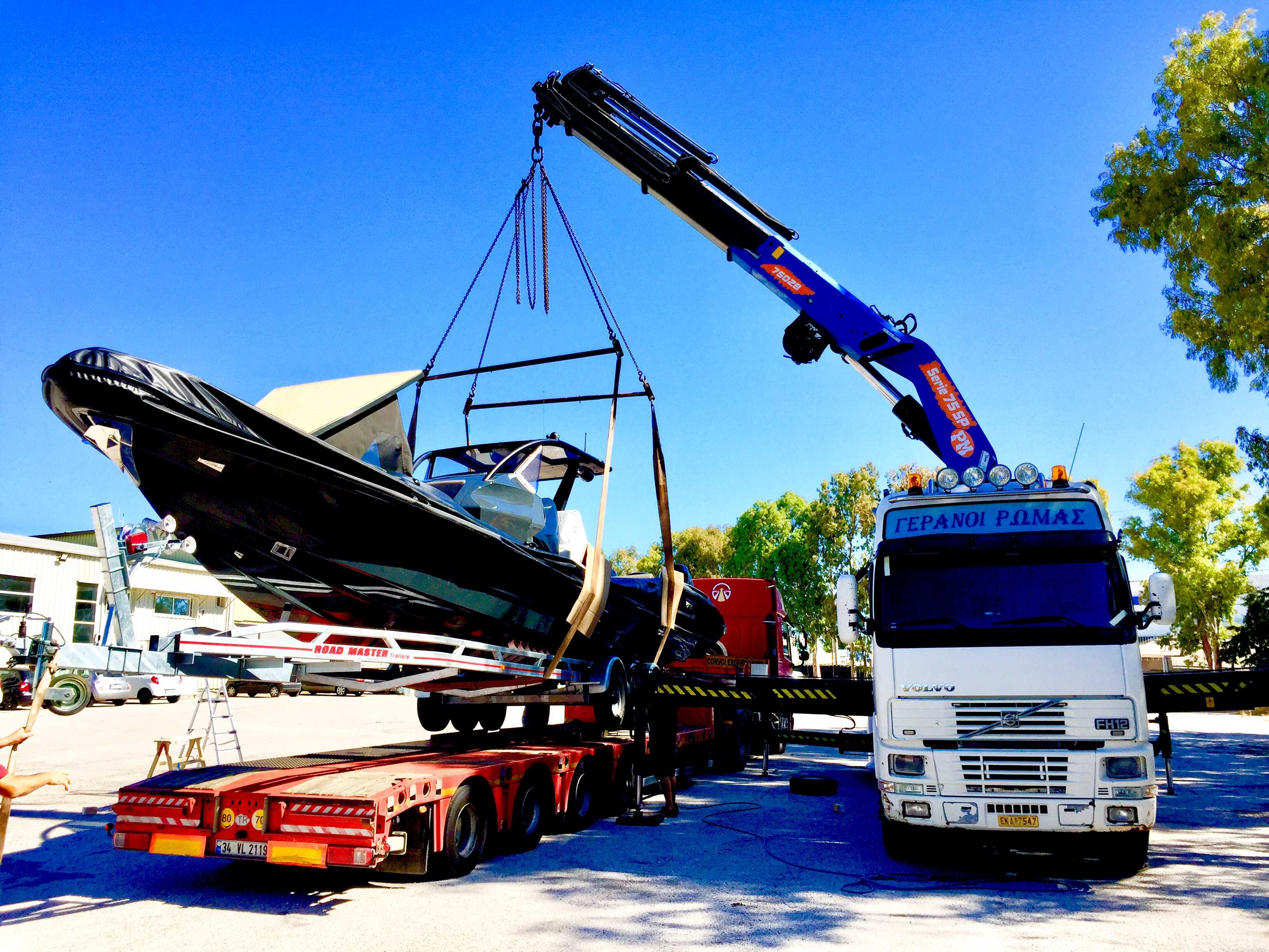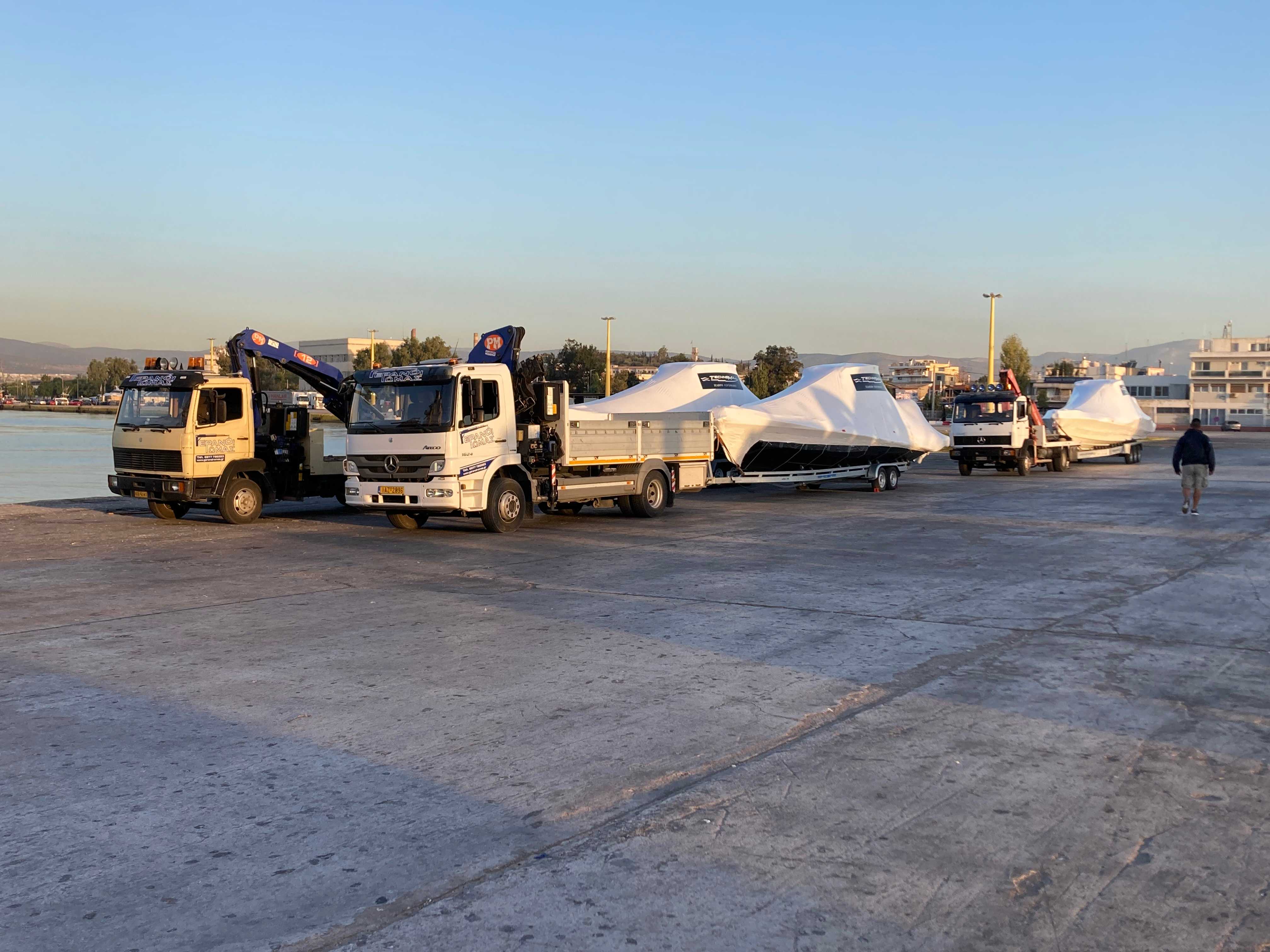 - Φορτώνουμε το σκάφος, με γερανό και τρέιλερ, και προχωράμε στη μεταφορά με σύγχρονο φορτηγό και συνοδευτικά οχήματα.