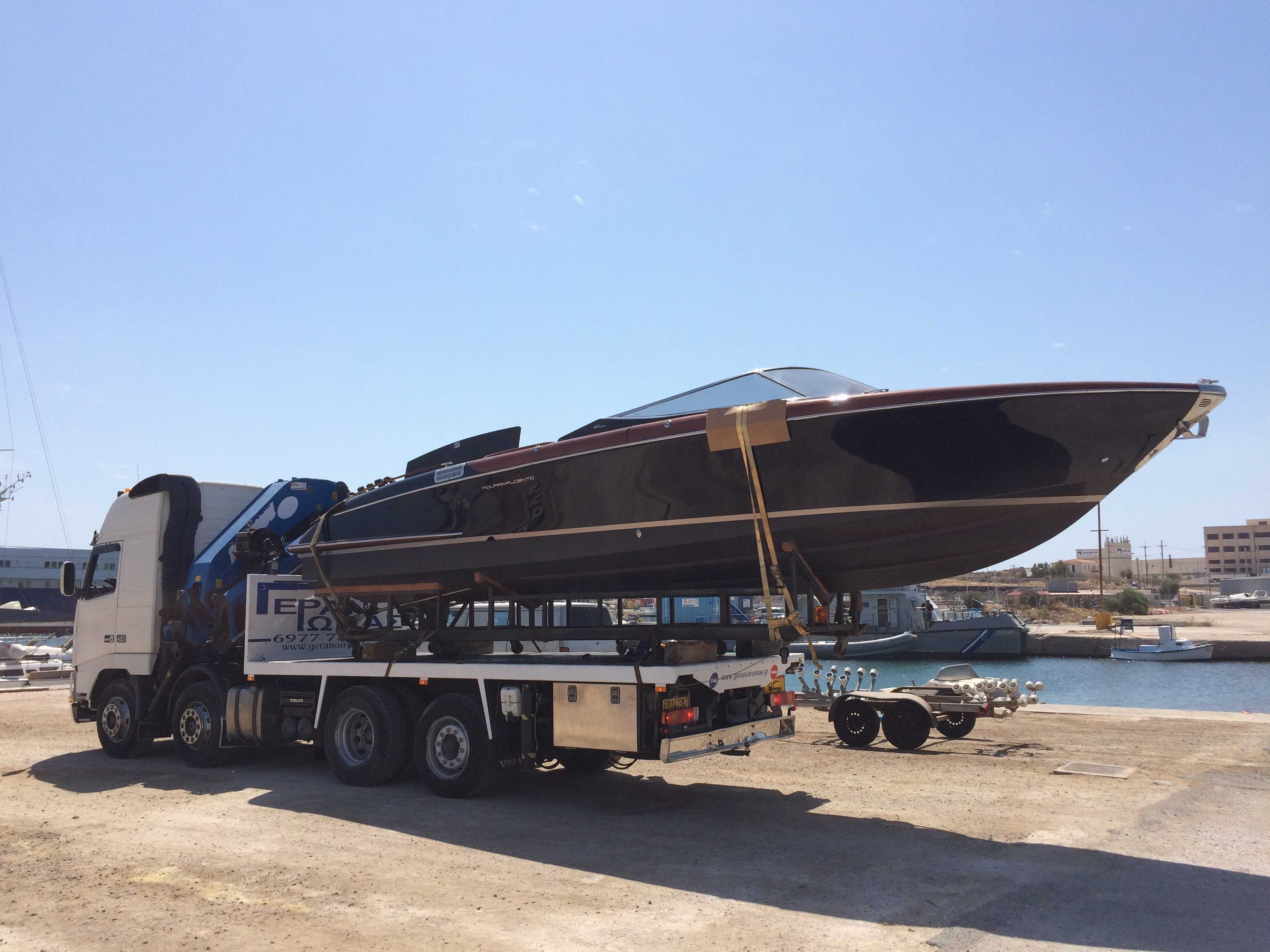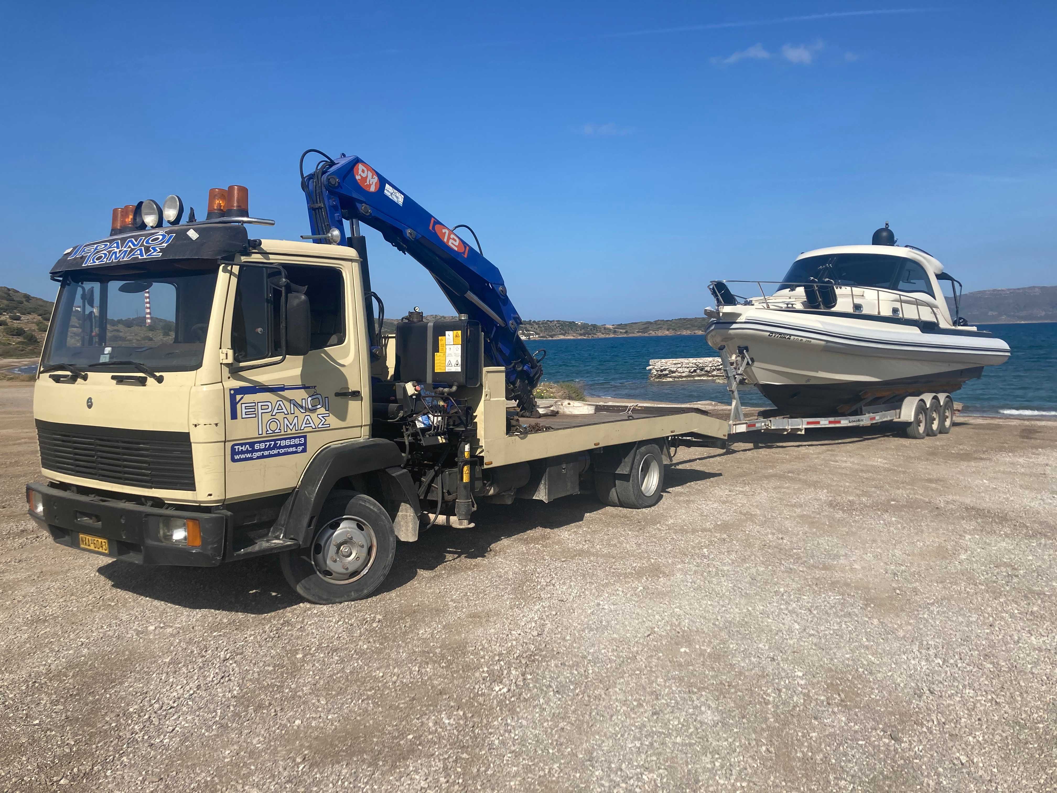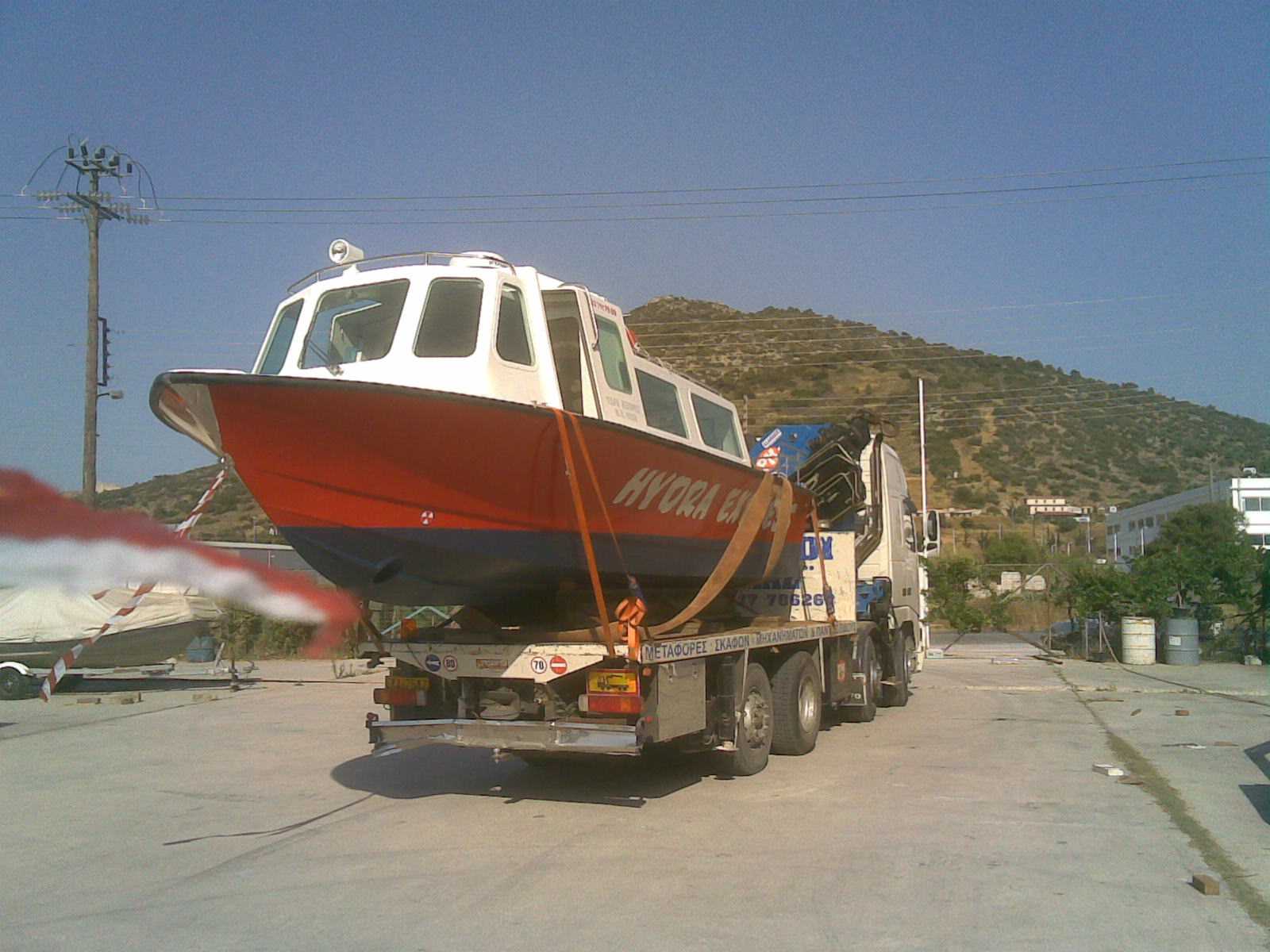 - Φορτώνουμε το σκάφος, με γερανό και τρέιλερ, και προχωράμε στη μεταφορά με σύγχρονο φορτηγό και συνοδευτικά οχήματα.
