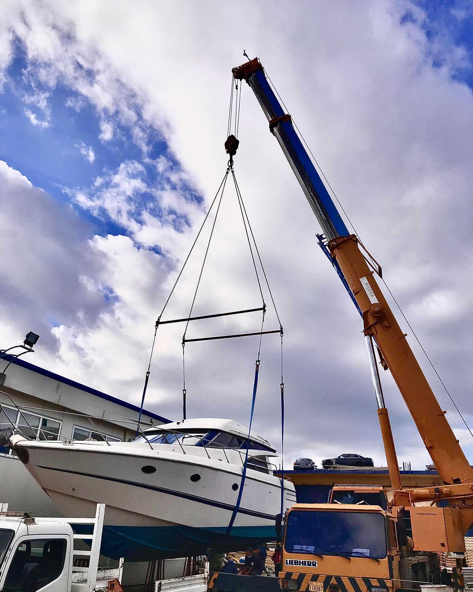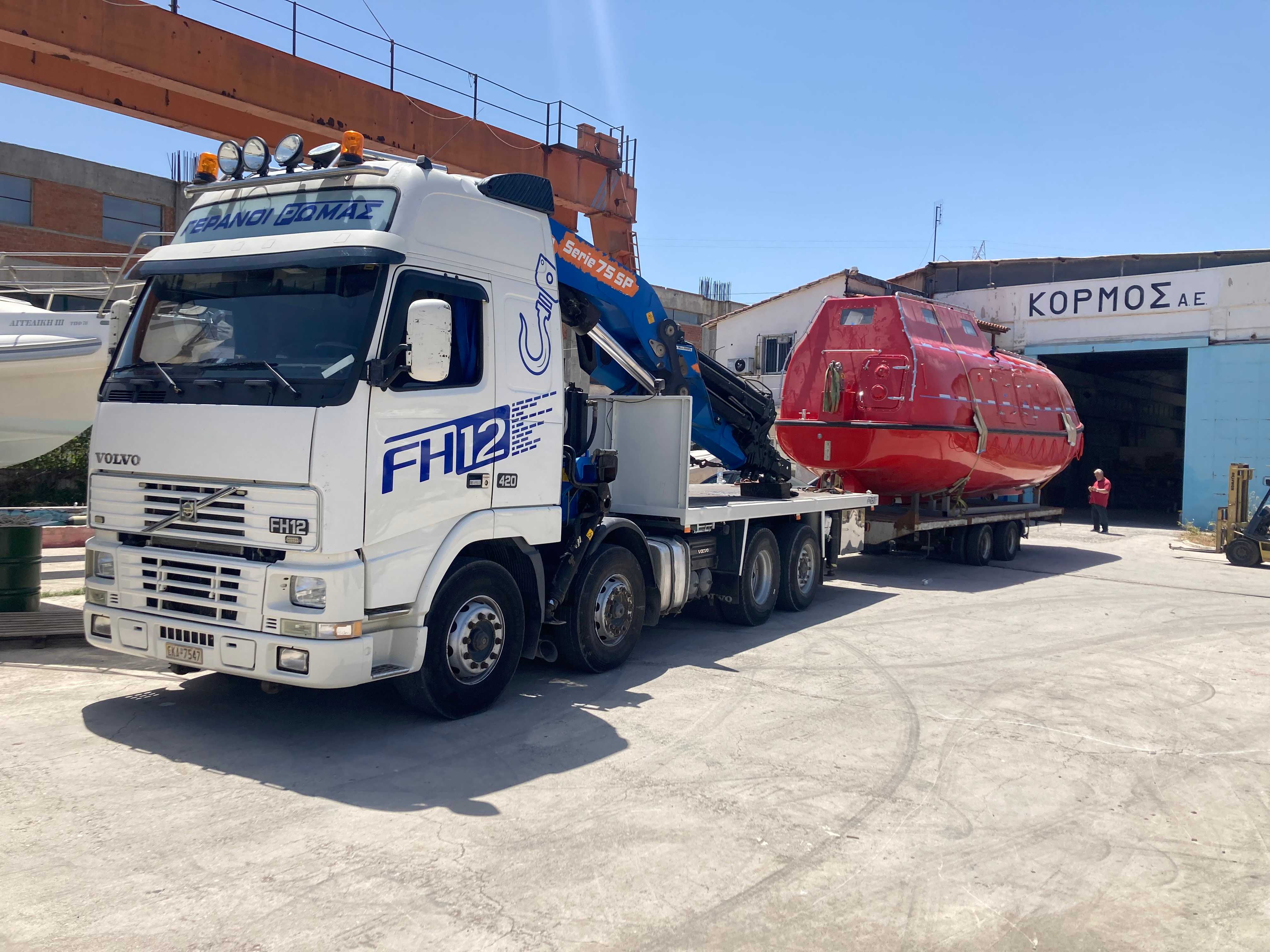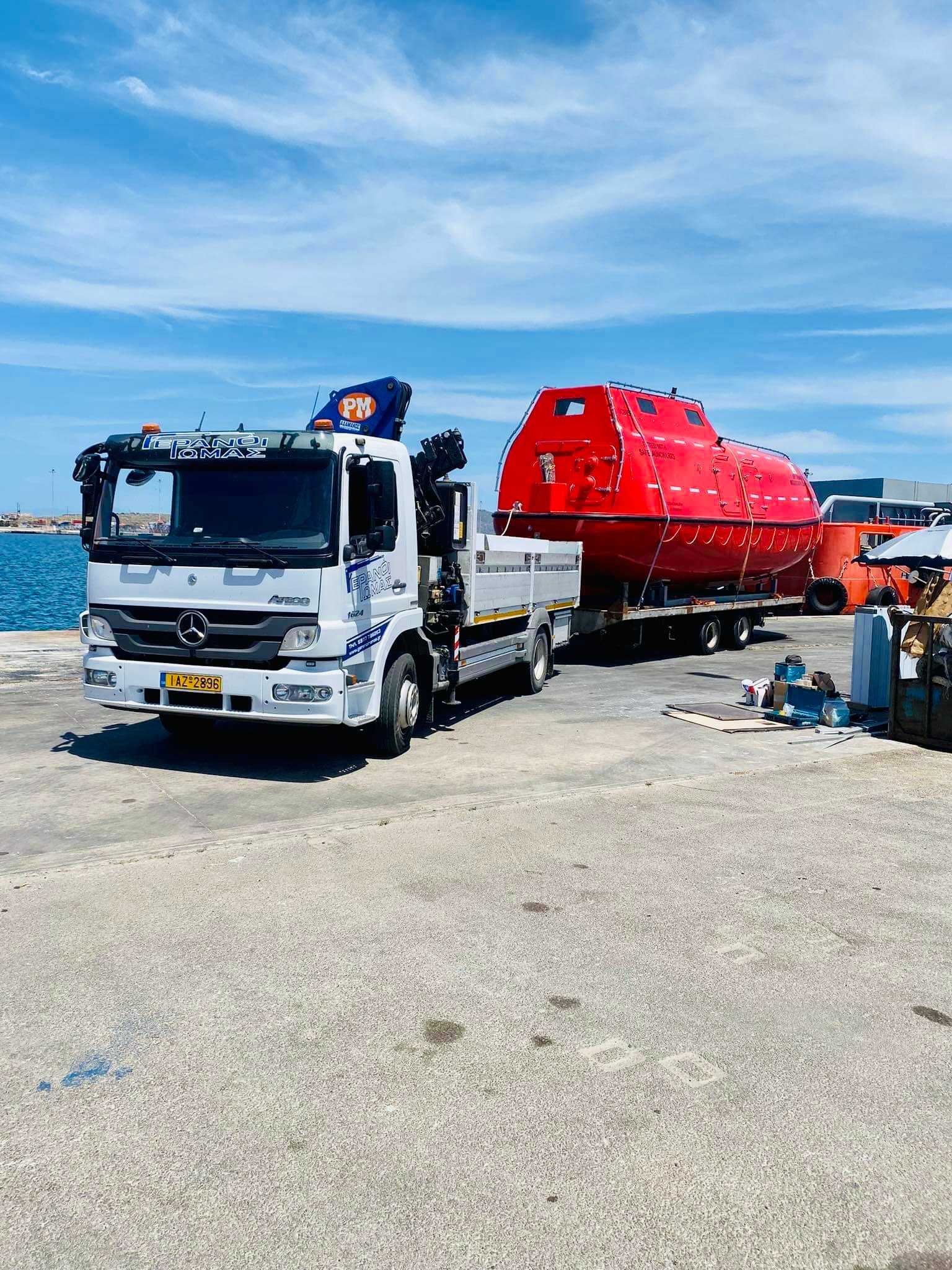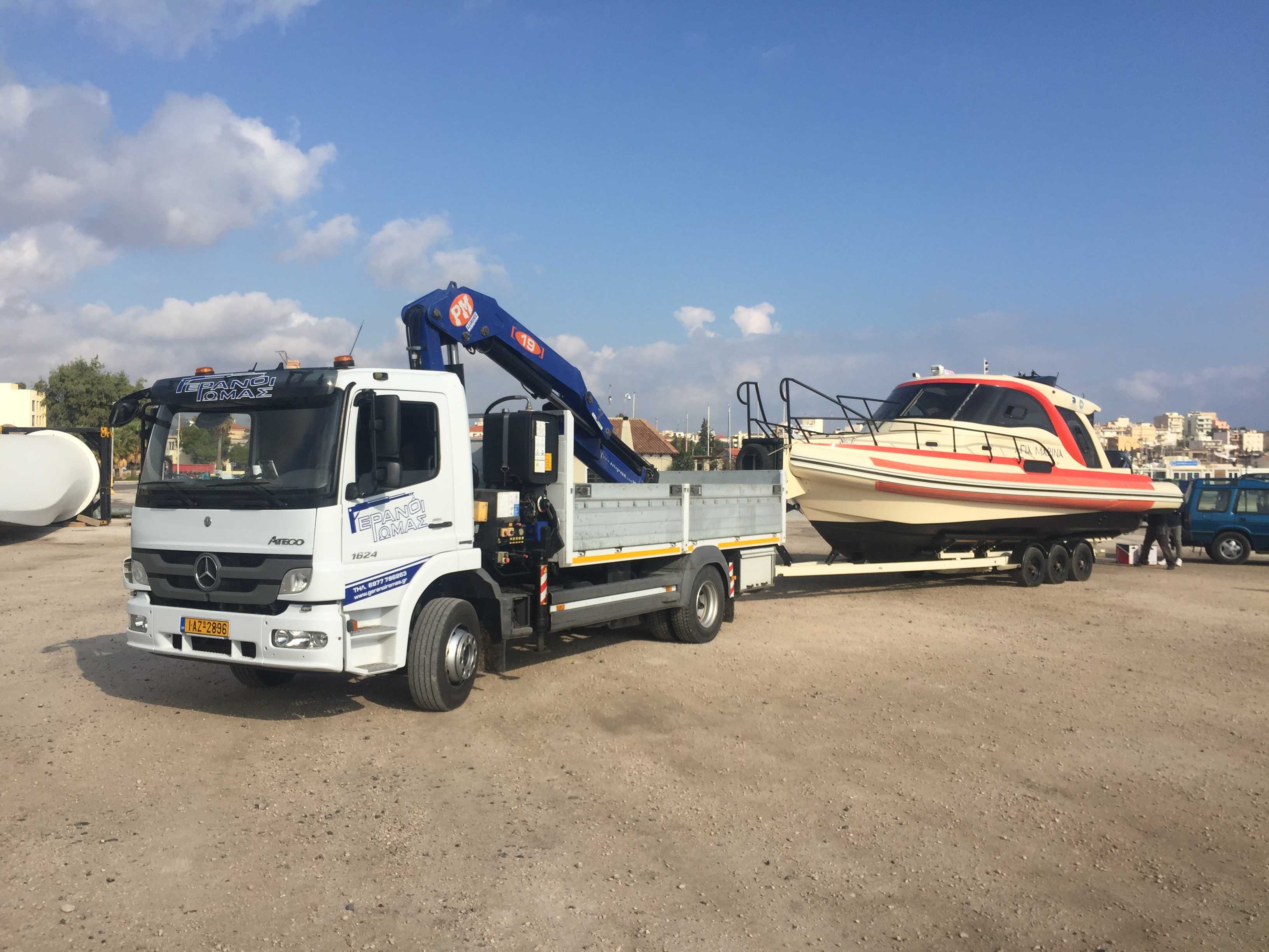 - Φορτώνουμε το σκάφος, με γερανό και τρέιλερ, και προχωράμε στη μεταφορά με σύγχρονο φορτηγό και συνοδευτικά οχήματα.